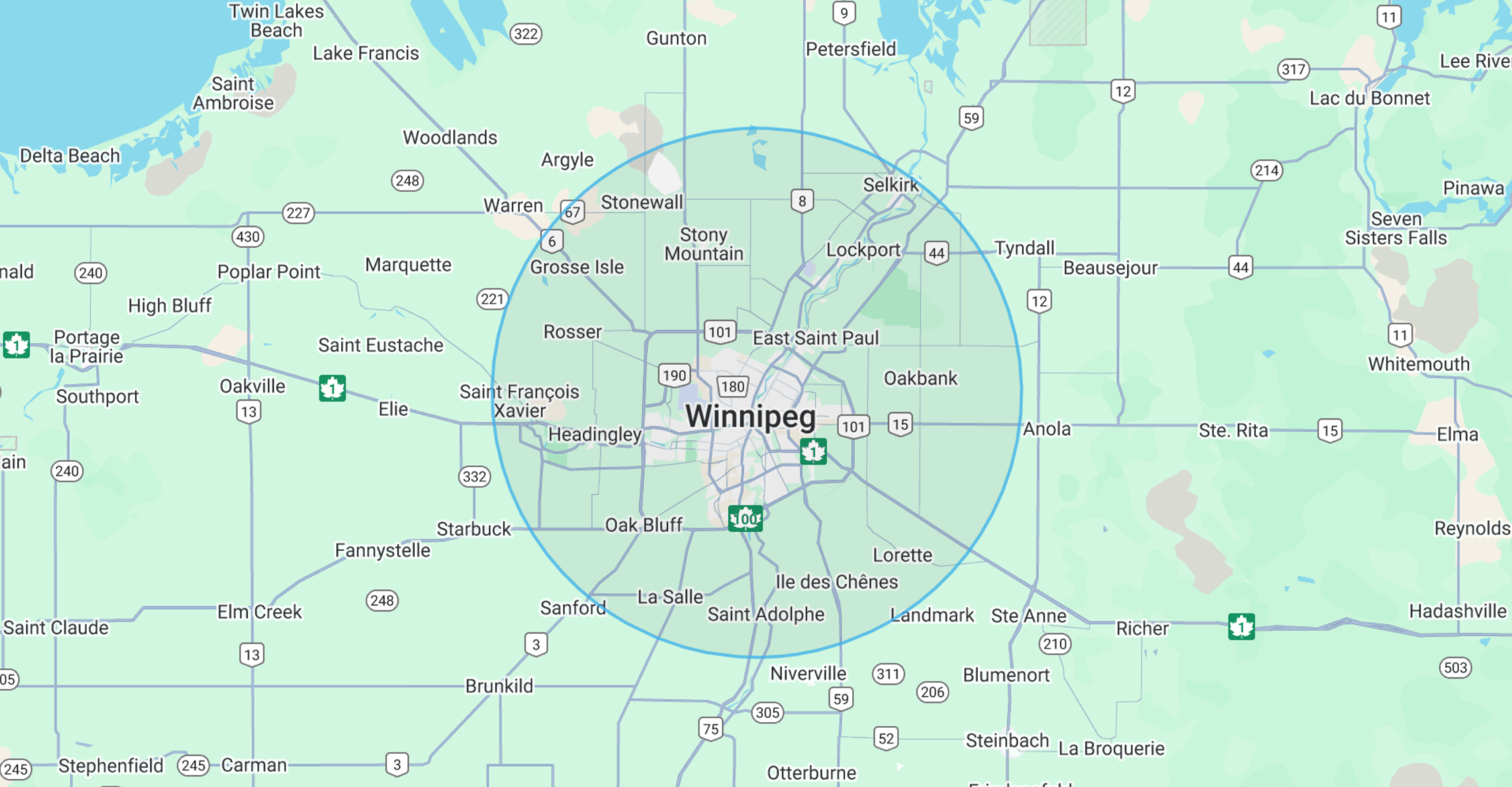 Appointments outside our core service areas will incur a travel fee, calculated at $0.80/km for the return journey (there and back) from the service area boundaries shown above.